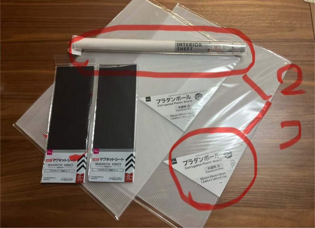 ↓これだけ用意しましたが、実際に使ったのは赤で囲んだ2つだけです。(理由は後ほど)